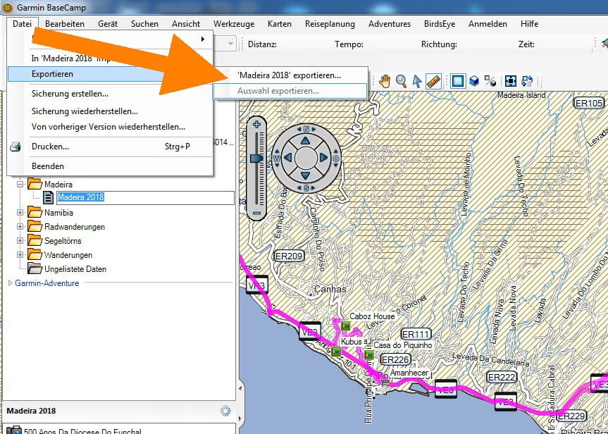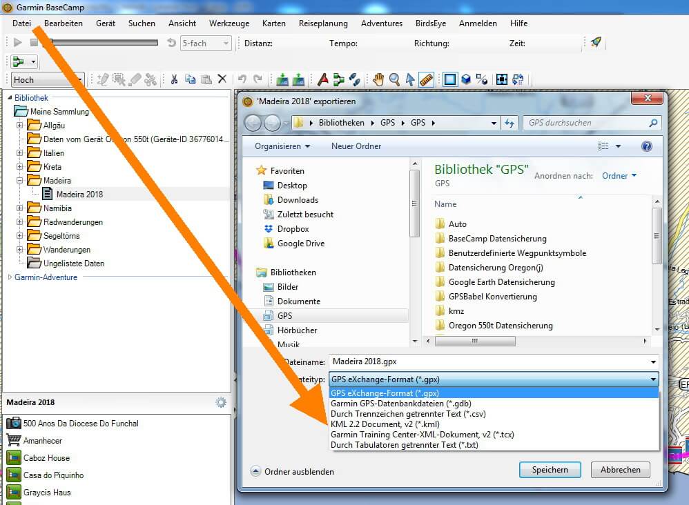 Garmin BaseCamp -Exportieren Garmin BaseCamp -Exportieren im Format KML