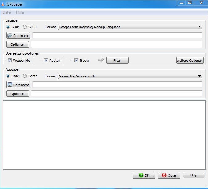 Grundsätzlich ist GPSBabel selbsterklärend und einfach zu handhaben. Leider unterstützt das Programm aber nicht den deutschen Zeichensatz, was beim Einstieg in die Bedienung leicht zum Frust führen kann. Basierend auf meinen Erfahrungen, habe ich deshalb im Folgenden meine Empfehlung beschrieben.